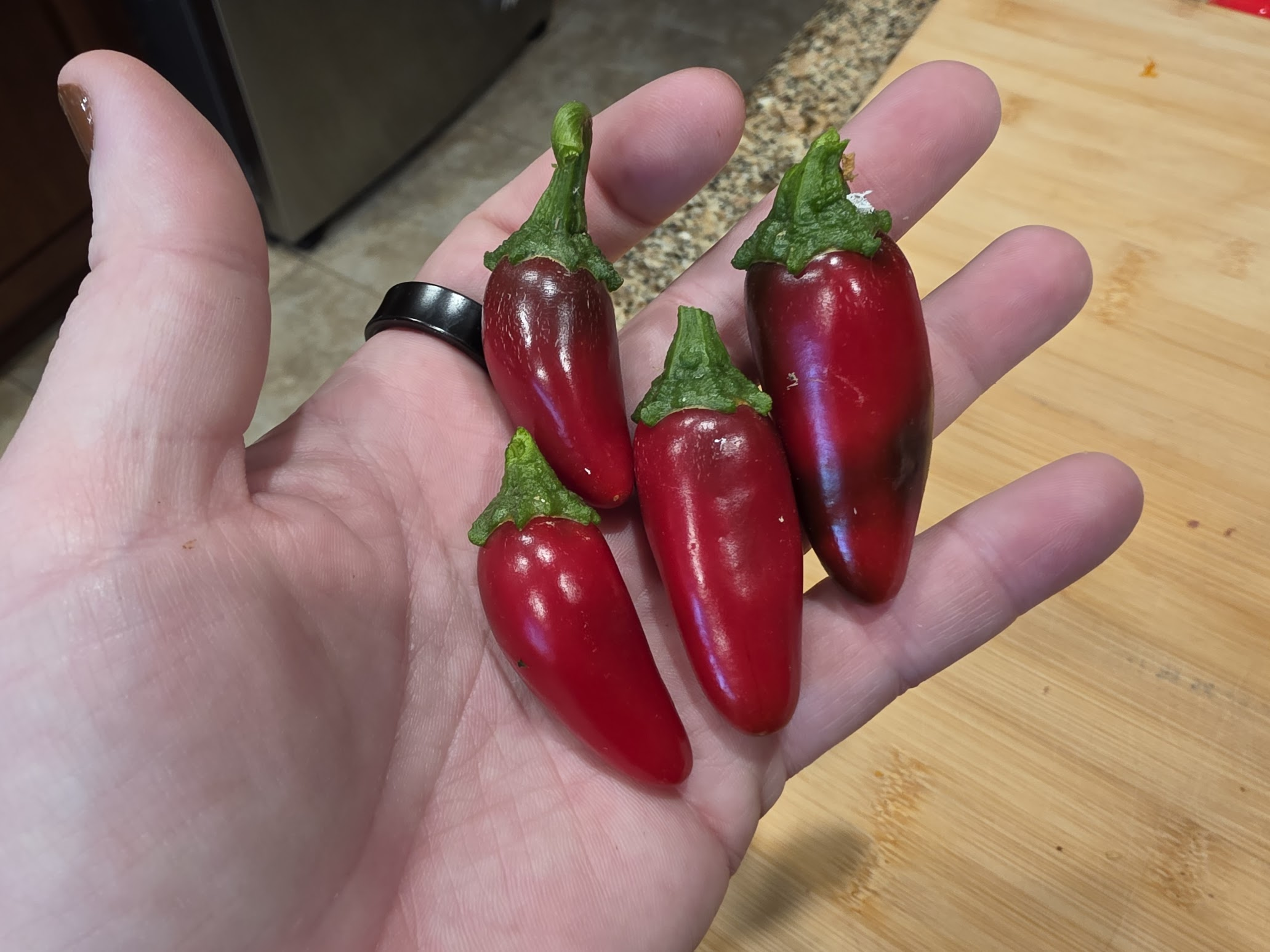 And the jalapeños? Those were a huge success. I’ve canned about 18 jars of them, and fed a whole bunch more to my husband and the chickens.
